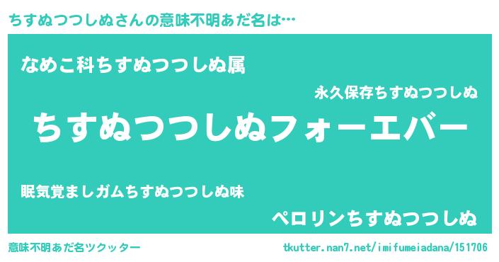 | 女子向けラノベタイトル風あだ名 | 『ちすぬつつしぬの雑貨屋さん』 |