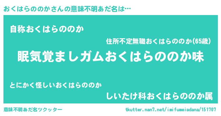 | 胡散臭い通販商品みたいなあだ名 | 『100人中100人が認めたイリジウム磁石…その名も「おくはらののか」』 |