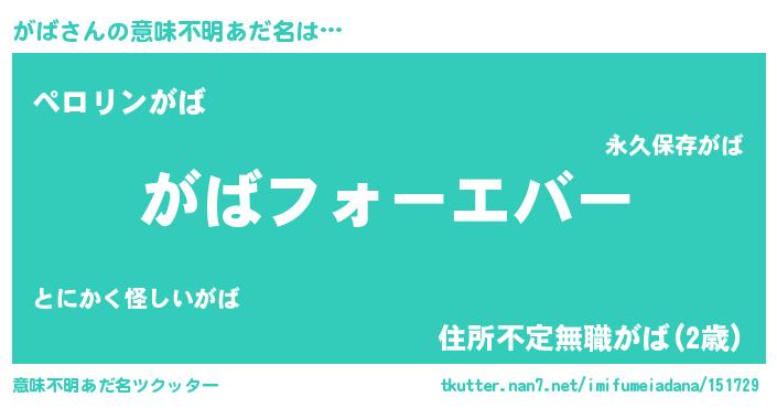 | 2回繰り返すあだ名 | 『ががばば』『がばがば』『しんしん』 |