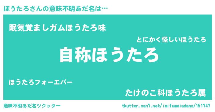 | 肩書あだ名 | 『ほうたろ閣下』『ほうたろ船長』 |