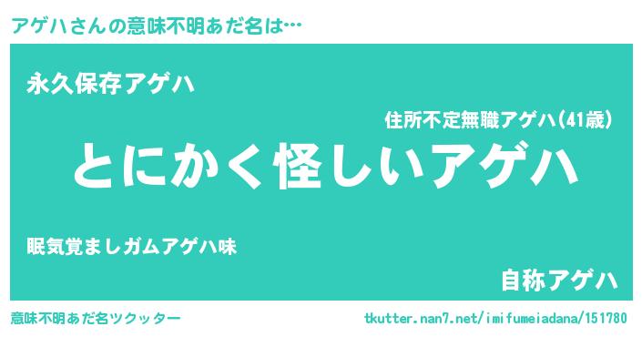 | ヘコむあだ名 | 『アゲお』『アゲハ(笑)』『牛乳』 |