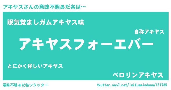 | ポケモン風あだ名 | 『アキヤダネ』『アックウザ』 |