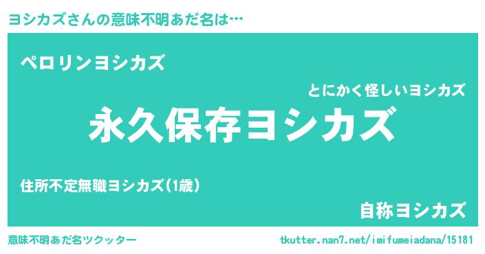 | 胡散臭い通販商品みたいなあだ名 | 『絶対に幸福をもたらす水素水…その名も「ヨシカズ」』 |