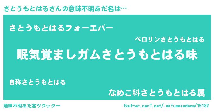 | 男性向けラノベタイトル風あだ名 | 『ノーゲーム・ノーサトウモトハル』 |