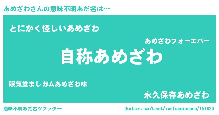 | 女子向けラノベタイトル風あだ名 | 『あめざわなんてお断りですっ。』 |