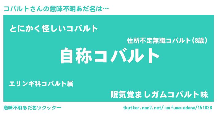 | 女子向けラノベタイトル風あだ名 | 『闇のコバルト』『コバルトは平凡を望む』 |