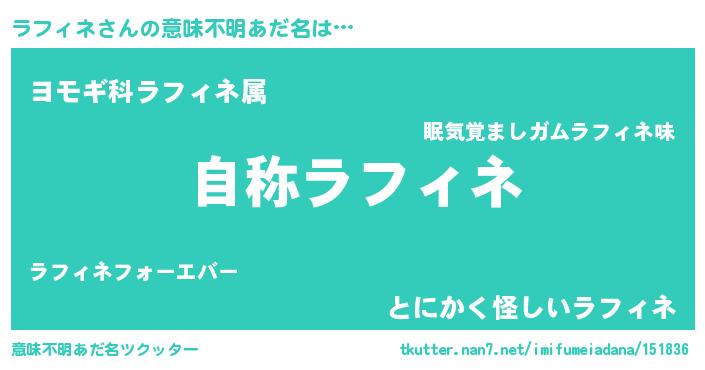 | 男性向けラノベタイトル風あだ名 | 『Re:ラフィネから始める異世界生活』 |