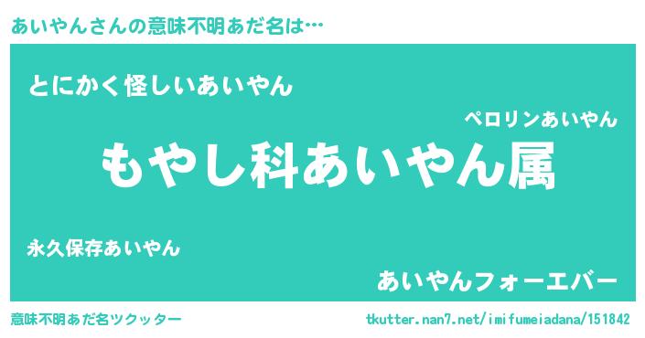 | 胡散臭い通販商品みたいなあだ名 | 『伝統あるサプリメント…その名も「あいやん」』 |