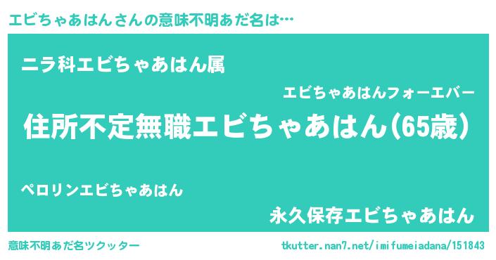 | ヒーロー風カッコイイあだ名 | 『仮面エビダー』『ネオエビチャアハン』 |