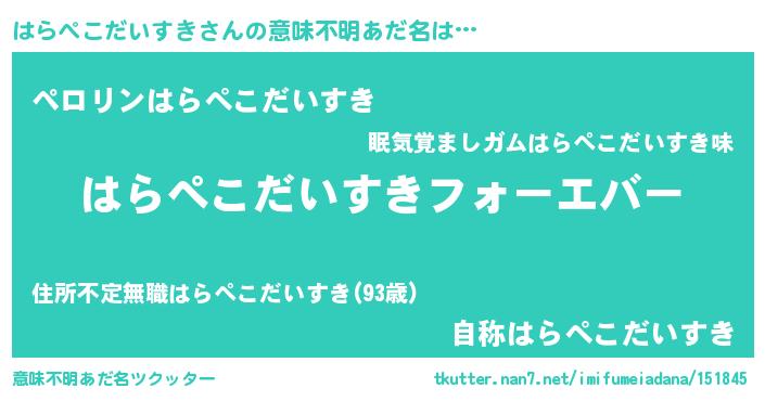 | ファンタジー風あだ名 | 『エターナルハラペコダイスキー』 |