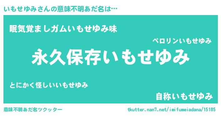 | 胡散臭い通販商品みたいなあだ名 | 『来世でも幸せになれる健康食品…その名も「いもせゆみ」』 |