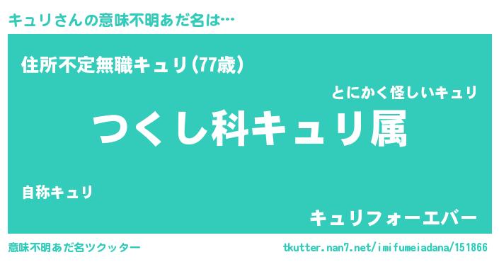 | 男性向けラノベタイトル風あだ名 | 『キュリに滅ぼされるだけの簡単なお仕事です』 |