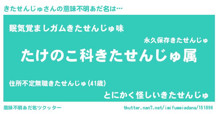 | 男性向けラノベタイトル風あだ名 | 『転生したらきたせんじゅだった件』 |