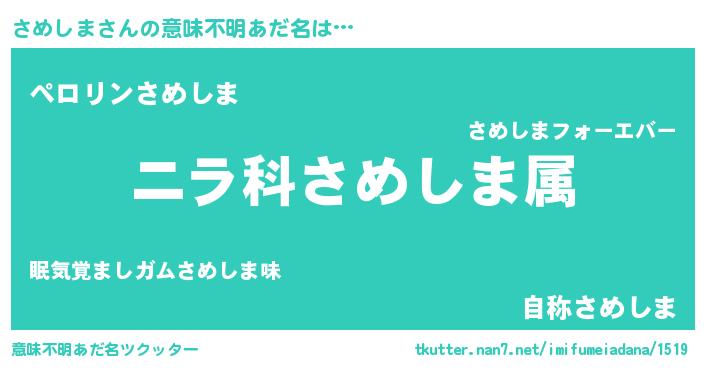 | ヘコむあだ名 | 『さめにゅー』『なまこ酢』『さめを』 |