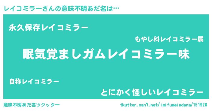 | ヘコむあだ名 | 『レイコミラー(笑)』『レイぷりん』 |