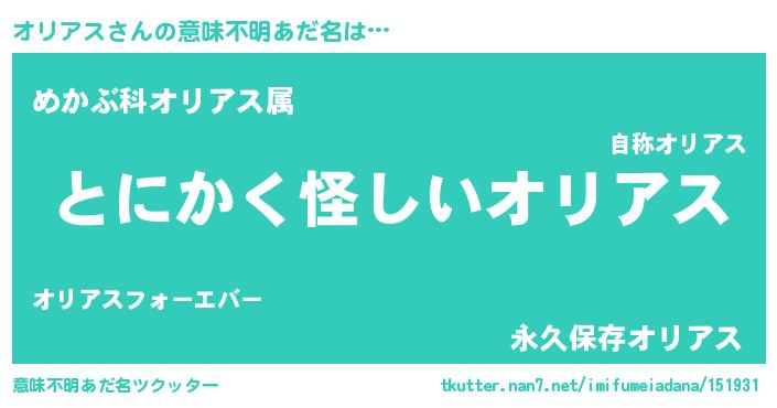 | ヘコむあだ名 | 『オリぷりん』『オリアス(笑)』 |