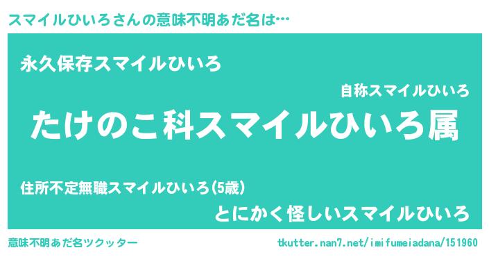 | ヘコむあだ名 | 『スマイルひいろ(笑)』『スマぷりん』 |