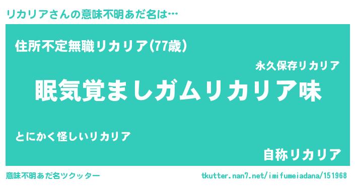 | ヘコむあだ名 | 『リカリア(笑)』『リカっぺ』『豆乳』 |