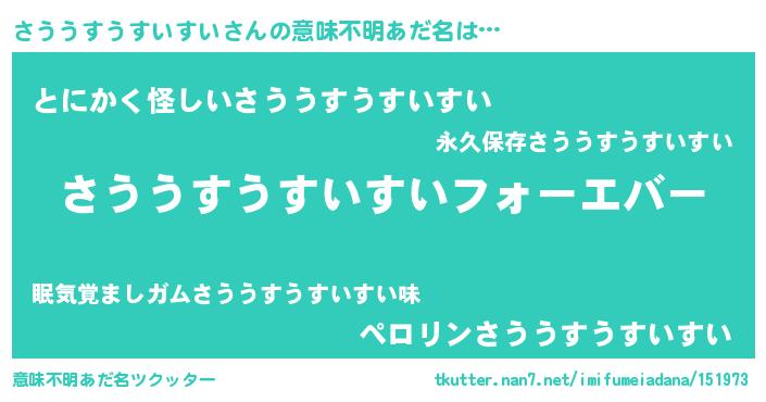 | 男性向けラノベタイトル風あだ名 | 『さううすうすいすいに滅ぼされるだけの簡単なお仕事です』 |