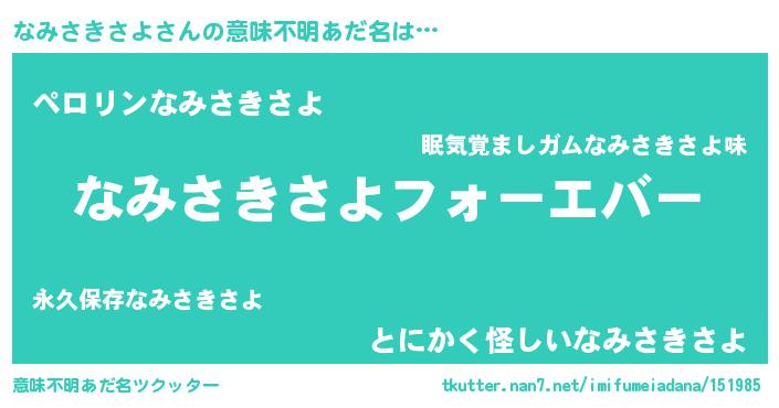 | ファンタジー風あだ名 | 『エターナルナミサキサヨー』 |