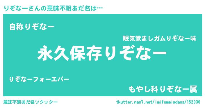 | 男性向けラノベタイトル風あだ名 | 『りぞなーという概念が存在しない退屈な世界 』 |