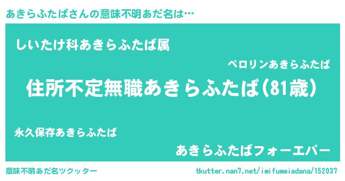 | 男性向けラノベタイトル風あだ名 | 『この素晴らしい世界にあきらふたばを!』 |