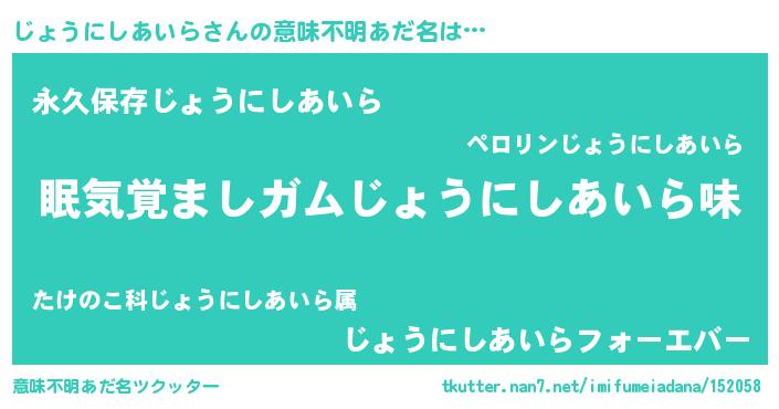 | 胡散臭い通販商品みたいなあだ名 | 『お金では代えられない隕石のかけら…その名も「じょうにしあいら」』 |
