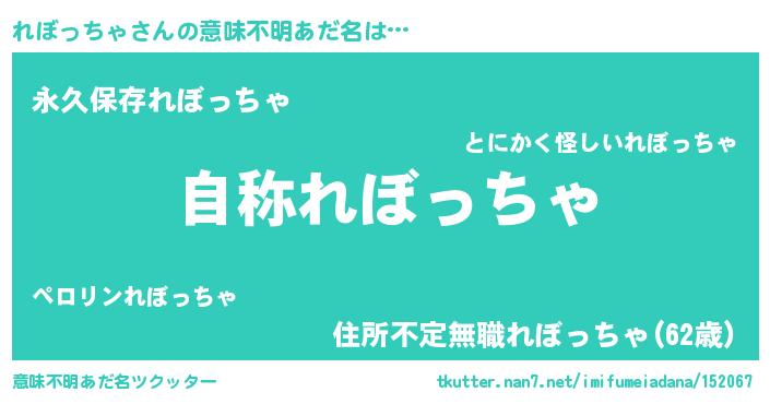 | 男性向けラノベタイトル風あだ名 | 『れぼっちゃに滅ぼされるだけの簡単なお仕事です』 |