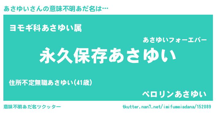 | ヒーロー風カッコイイあだ名 | 『ネオアサユイ』『スーパーアサユイ』 |