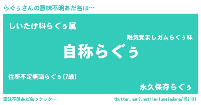 | ヘコむあだ名 | 『らぐぅ(小並感)』『らぐっぺ』 |