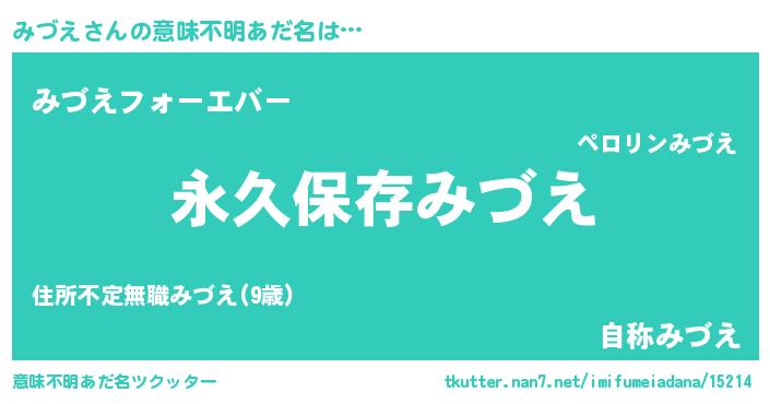 | 男性向けラノベタイトル風あだ名 | 『みづえという概念が存在しない退屈な世界 』 |