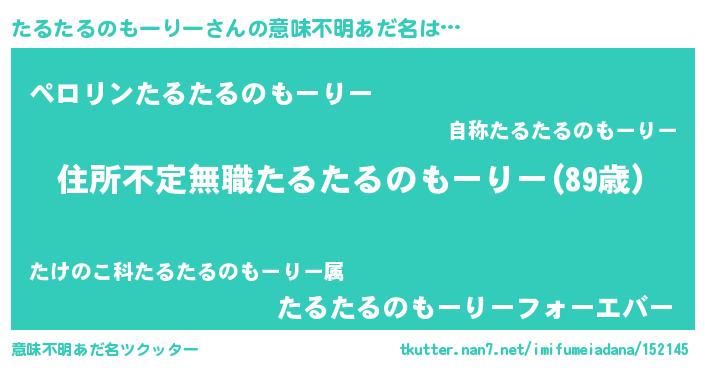 | 男性向けラノベタイトル風あだ名 | 『この素晴らしい世界にたるたるのもーりーを!』 |