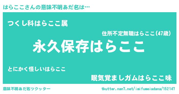 | 男性向けラノベタイトル風あだ名 | 『はらここという概念が存在しない退屈な世界 』 |