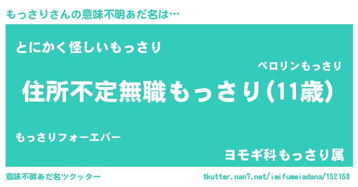 | 男性向けラノベタイトル風あだ名 | 『この素晴らしい世界にもっさりを!』 |
