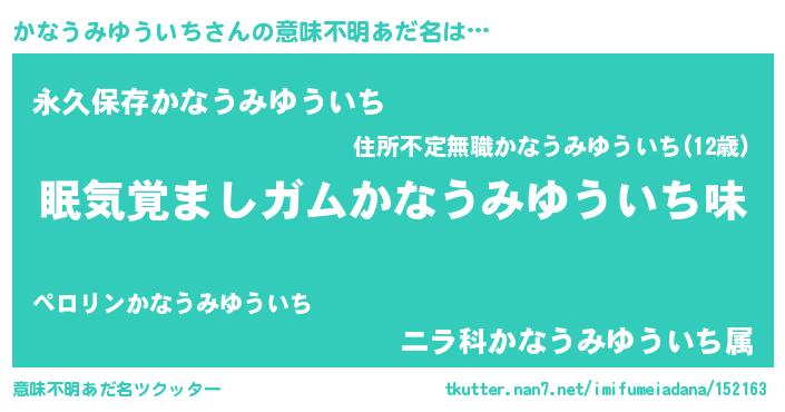 | ヘコむあだ名 | 『かなうみゆういち(笑)』『かなふぇ~』 |