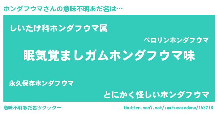 | 男性向けラノベタイトル風あだ名 | 『ノーゲーム・ノーホンダフウマ』 |