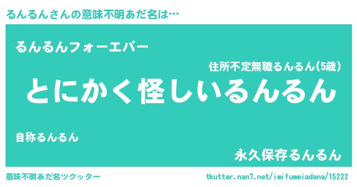 | ヒーロー風カッコイイあだ名 | 『暗黒騎士ルン』『ウルトラるんるんマン』 |