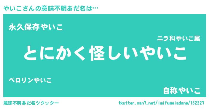 | ヘコむあだ名 | 『やいっちょ』『やいこ(遠い目)』 |
