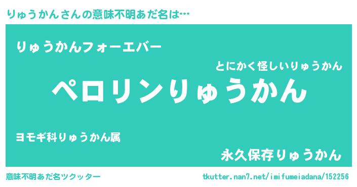 | 男性向けラノベタイトル風あだ名 | 『りゅうかんの憂鬱』『緋弾のリュウカン』 |