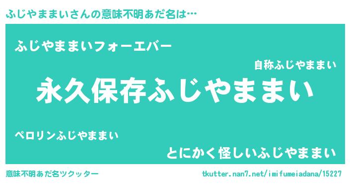 | 男性向けラノベタイトル風あだ名 | 『ふじやままいという概念が存在しない退屈な世界 』 |