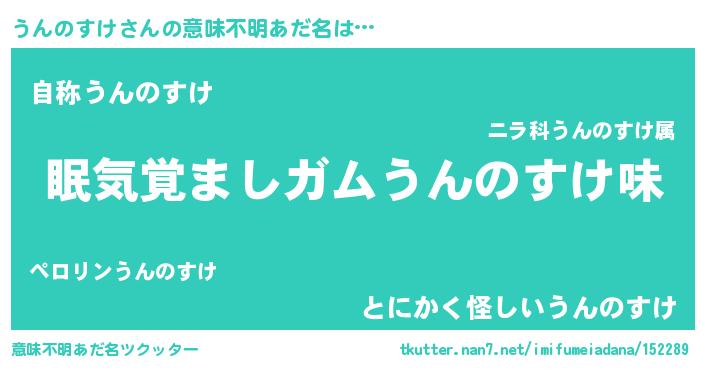| ヒーロー風カッコイイあだ名 | 『慈愛の使者うんのすけ』『炎刃騎士ウン』 |