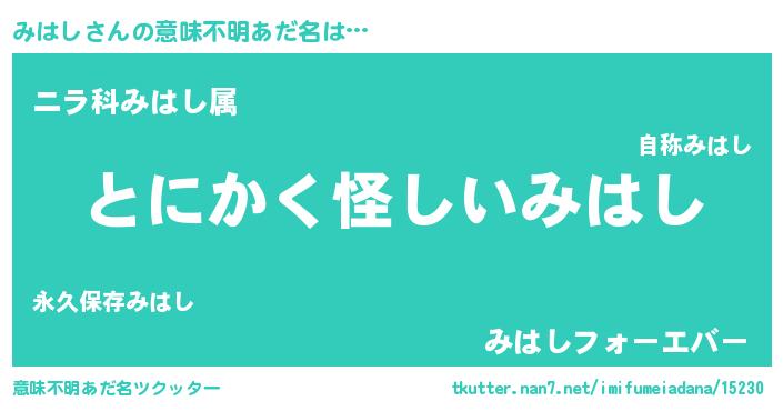 | 女子向けラノベタイトル風あだ名 | 『みはしの卵を拾いまして』『闇のみはし』 |