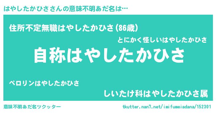 | 肩書あだ名 | 『はやしたかひさ総統』 |