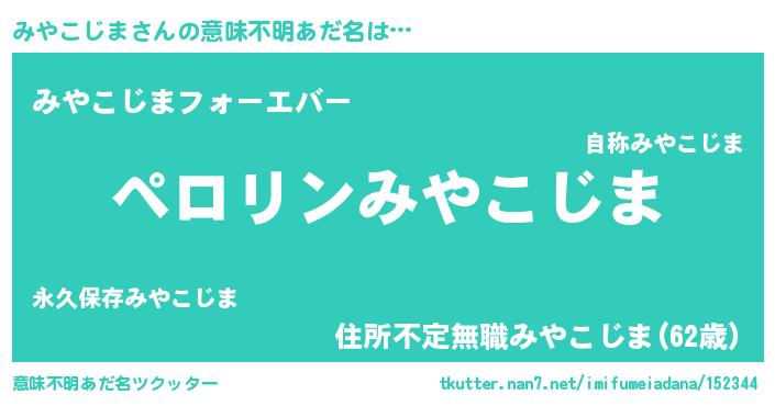 | ファンタジー風あだ名 | 『ミヤフェル』『エターナルミヤコジマー』 |