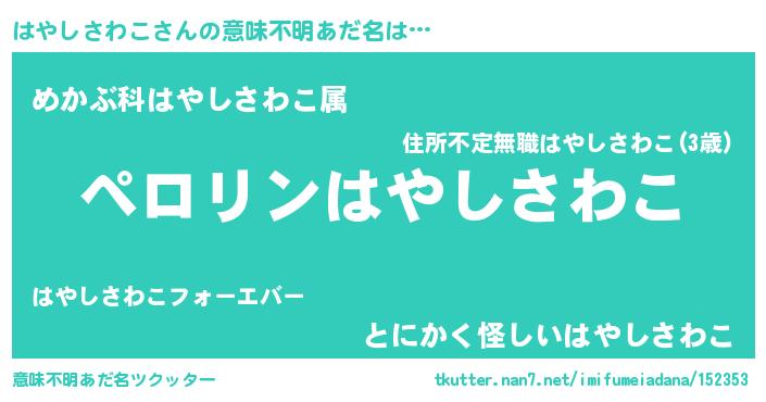| 胡散臭い通販商品みたいなあだ名 | 『必ず成功する霊験あらたかなお札…その名も「はやしさわこ」』 |