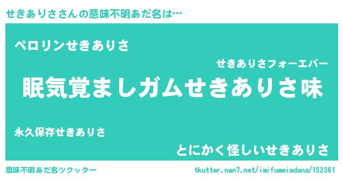 | 欧米人風あだ名 | 『せきありさ・ステッグマイヤー』 |