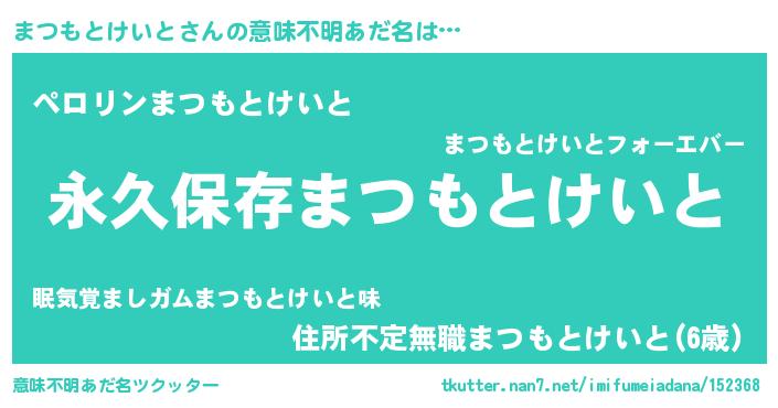 | ヘコむあだ名 | 『まつもとけいと(小並感)』『まつにー』 |