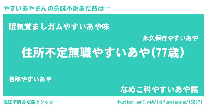 | 料理風あだ名 | 『やすいあやのカルパッチョ風』 |