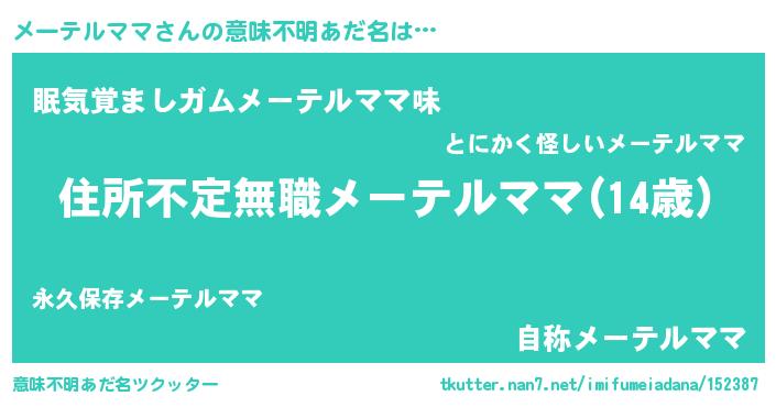 | 男性向けラノベタイトル風あだ名 | 『この素晴らしい世界にメーテルママを!』 |