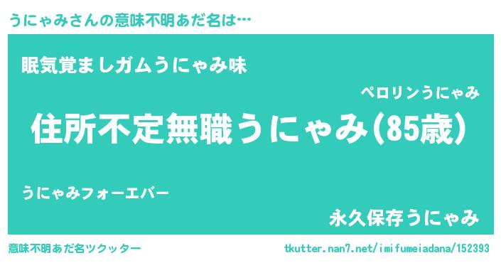 | ヒーロー風カッコイイあだ名 | 『仮面ウニダー』『正義の使者うにゃみ』 |